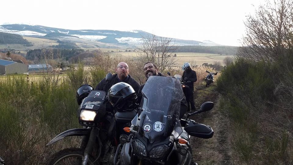 Exactement !! Alors au boulot mon gars. T’es pas venu là pour cueillir des pâquerettes. Je décide donc de reprendre un verre et de continuer l’expérience. Nous repartons donc dans ces petits sentiers auvergnats plein de boue et de pièges. Tout d’un coup on tombe sur un troupeau de « grosses ». Comprendre grosses motos qui coûtent un bras.